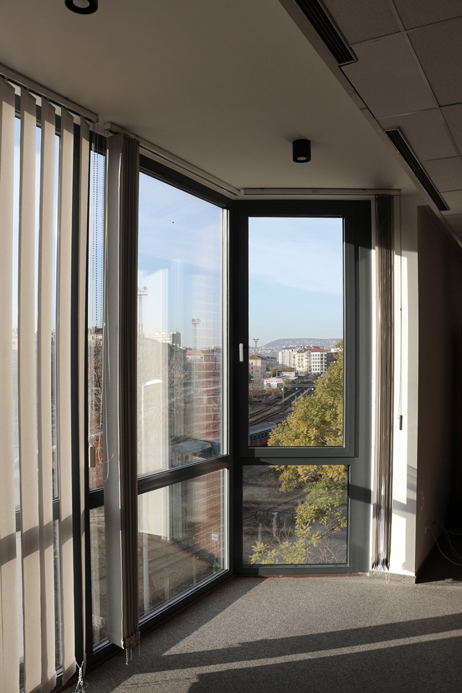 A „B” épület Mészáros utcai homlokzatán a portálablakok cseréje volt a megbízás, ami nagyon körültekintő tervezést kívánt, mivel a tűzvédelmi előírásokat és a hőtani, beázási problémákat is kezelnie kellett az újonnan bekerülő nyílászáró szerkezeteknek. Az új szerkezet vastagabb, háromrétegű üvegezésű és nehezebb, mint a régi így a megfelelő tartószerkezetek kialakításának fontos szerepe volt a tervezés során. A tervezés során a legnagyobb kihívást az új portálablakok bemelése okozta.